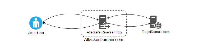 When Victim User makes a request to AttackerDomain.com, the reverse proxy will intercept the HTTP request and modify the HTTP header values (e.g. the Host header) and HTTP body (as needed) with a script. This allows the request to be passed to TargetDomain.com in a way that makes it seem like the request originated from Attacker’s Reverse Proxy and not from the Victim User requesting AttackerDomain.com.